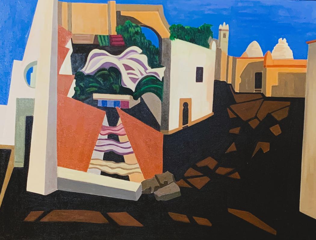 I am drawn to history and the history painters, to myth and the myth makers, both historic or contemporary. The physical space created by the stories we tell ourselves--whether religious or political-- provokes me to rearrange it from another perspective. In recent work created during an artist residency in Portugal I reorganized the physical spaces in the village where I was staying in order to shine a light on the contributions from its Islamic past and also to highlight the dramatic effects of climate change in this corner of Iberia. Another residency in Perú offered another view on history which gave rise in 2025 to a group of large paintings titled Invisible Cities/Hidden Towns.