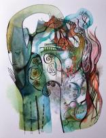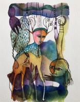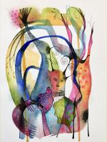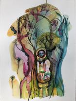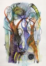 watercolor, ink, acrylic on paper, 12x9, 2024