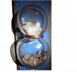 Money, death, and time are embedded in this collage of cemetery headstone images embellished with smaller motifs from porcelain and embossed glass. The squirrels are simultaneously innocent forest creatures emblematic of nature as well as stand-ins for busy human beings hoarding acorns and accumulating wealth.