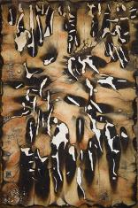 Acrylic,collage on burned canvas, 36x24x1, 2014