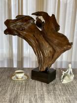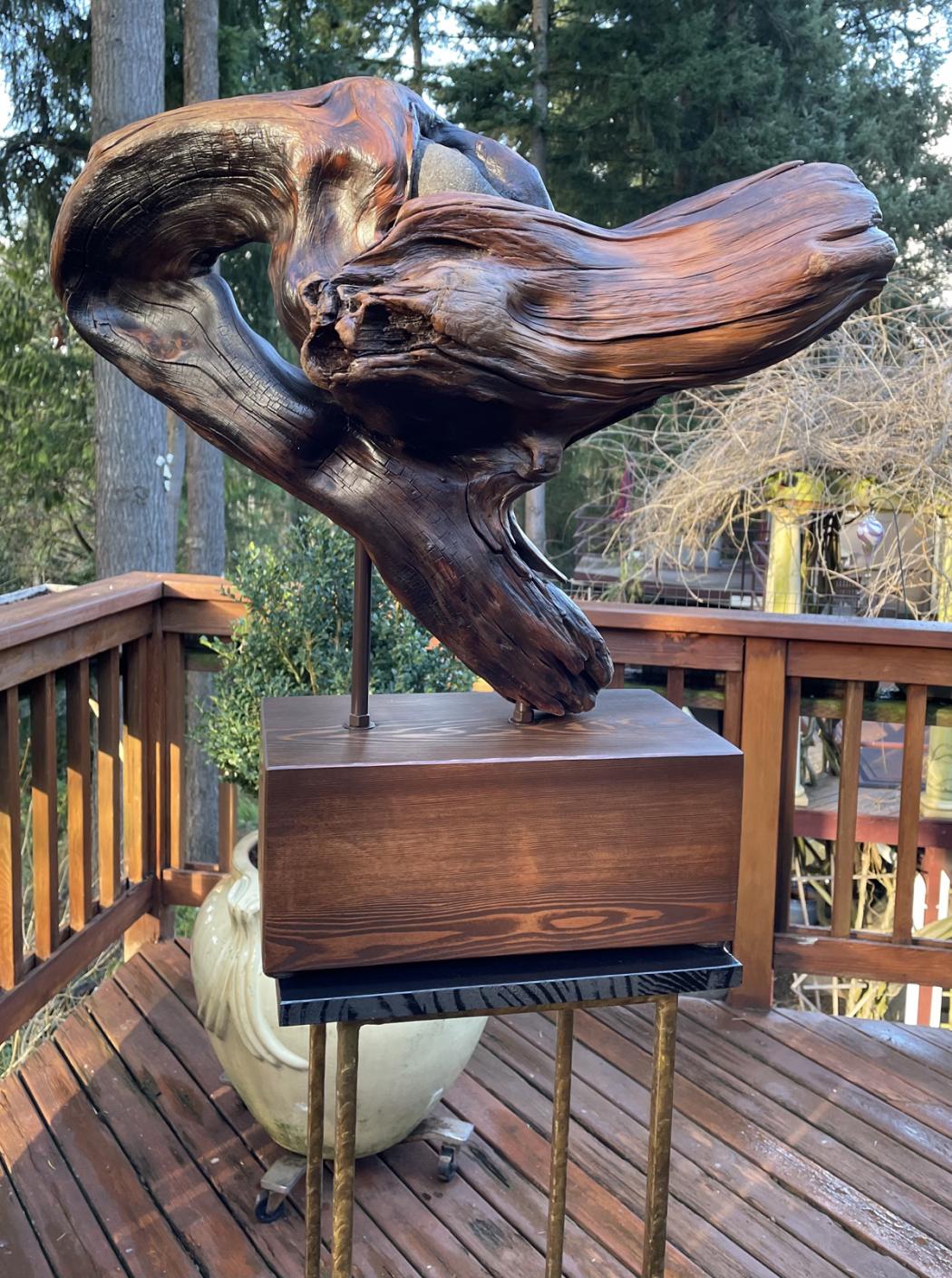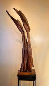 I am a sculptor transforming found wood into art. As I admire the rich, green life of the Pacific Northwest forest and the abundance of driftwood on ocean shores, I strive to prolong the life of fallen trees. I collect twisted roots and gnarled driftwood and try to reveal their hidden beauty. Some pieces display their potential right away and others spend months or even years in my workshop before I arrive at a concept. Similarly, some take weeks and others much longer to finish. If a piece needs to be mounted, I pay meticulous attention to selecting and crafting the right base to complement my art. I hope my art brings joy and inspires others to see latent possibilities in seemingly ordinary pieces of wood.