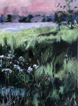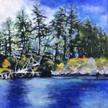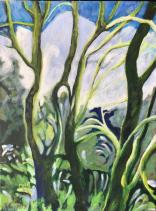 Public lands are scheduled for escalated decimation by the feds and she has lost words to express her sorrow. So, she continues to paint tree images, but this year larger canvases and as metaphors with titles such as ‘Resist’, ‘Waiting or Waiting for Godot’, ‘Dancing at Oyster creek’, ‘Rumble at Silver Creek’ and ‘Sanctum’.