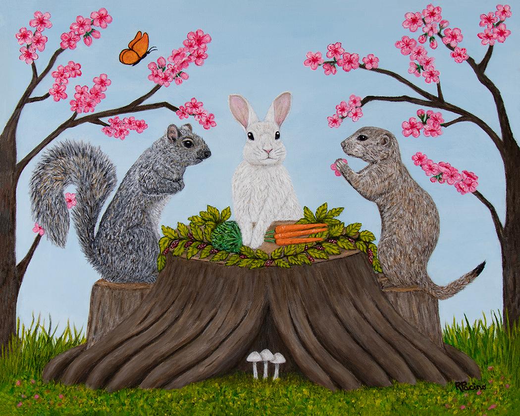 "Garden Gathering," with some of my favorite little creatures, opened the door to a storybook world where sharing a meal reflects a quiet kind of equality and kinship.