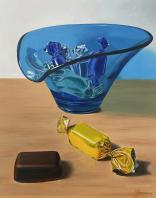 I am a Seattle-based oil painter specializing in still life realism. My recent work centers on found glass objects sourced from thrift stores and local markets throughout Washington State. Through close observation and deeply saturated color, I paint these humble objects as large-scale portraits, traces of everyday life shaped by use, light, and time. My paintings reflect values I hold deeply: attentiveness, reuse, and reverence for what already exists. I'm drawn to glass for its tensions, fragile yet enduring, utilitarian yet luminous.