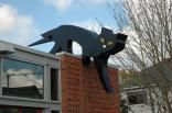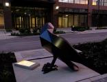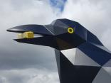 The colossal, stylized corvid stands twelve feet tall and serves as an iconic and humorous gateway to this beloved city park.
